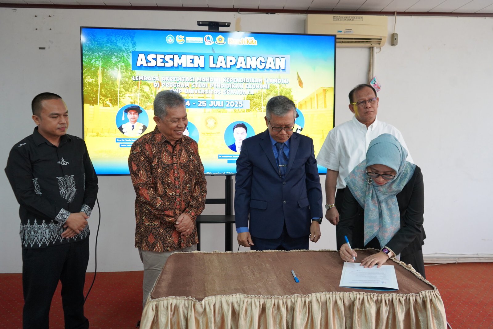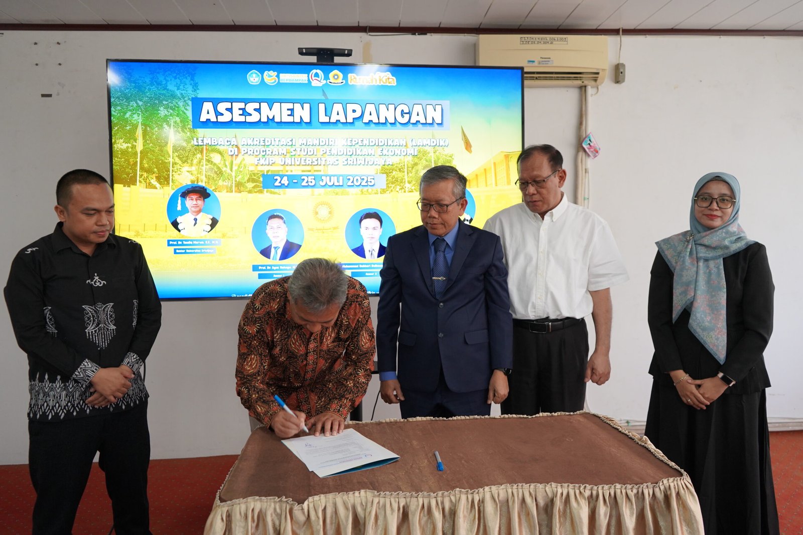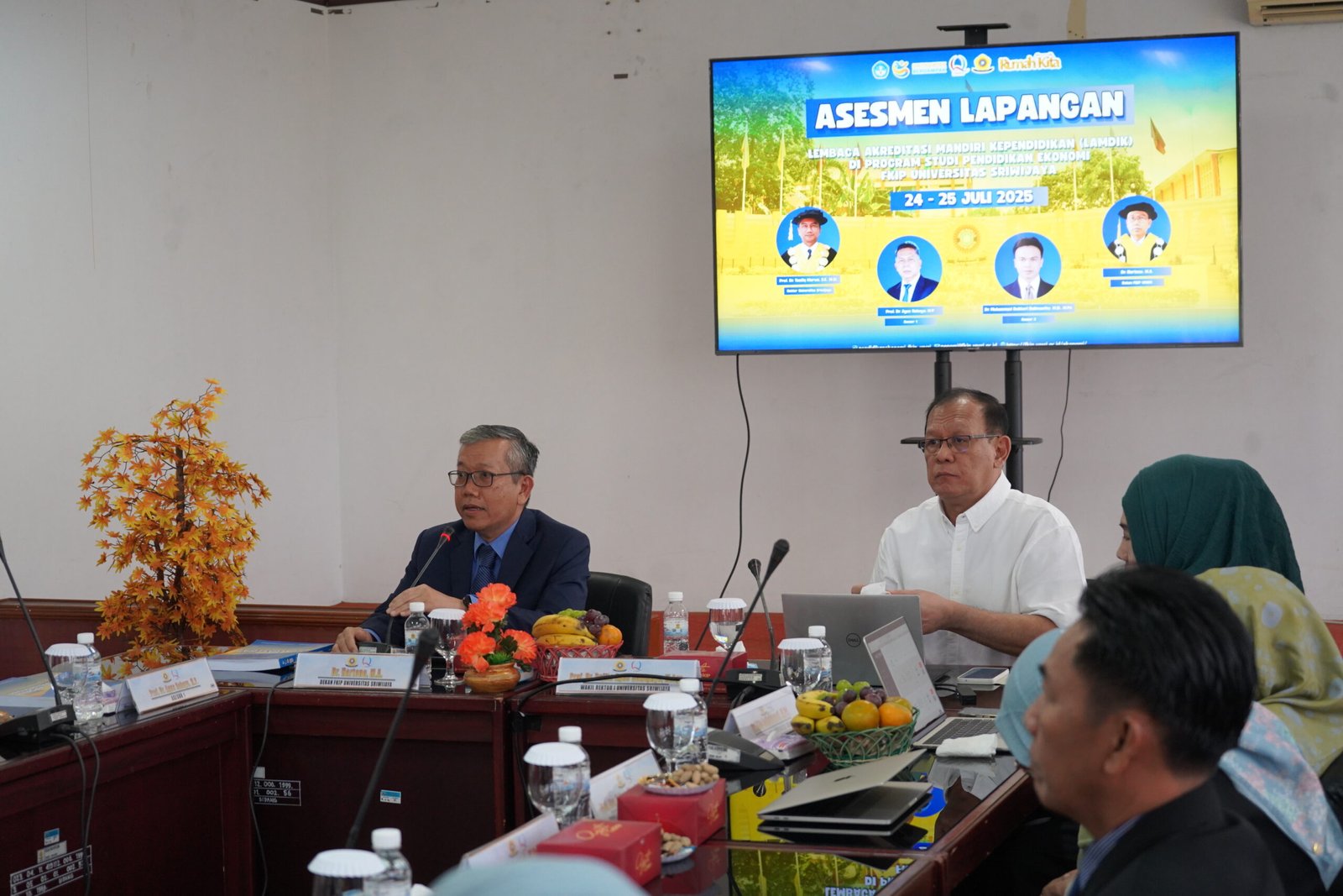 Pelaksanaan Asesmen Lapangan oleh tim asesor yaitu Prof. Dr. Agus Rahayu, M.P. dan Dr. Muhammad Bukhori Dalimunthe, M.Si.,M.Pd. berjalan dengan tertib dan lancar. Kegiatan Asesmen Lapangan ini dibuka langsung oleh Wakil Rektor I Universitas Sriwijaya Bidang Akademik Prof. Dr. Ir. H. Rujito Agus Suwignyo, M. Agr. Sambutan dari Dekan FKIP Universitas Sriwijaya Dr. Hartono, M.A. yang mengatakan sangat mendukung pelaksanaan Asesmen Lapangan untuk semua program studi yang ada di lingkungan FKIP termasuk Program Studi Pendidikan Ekonomi.