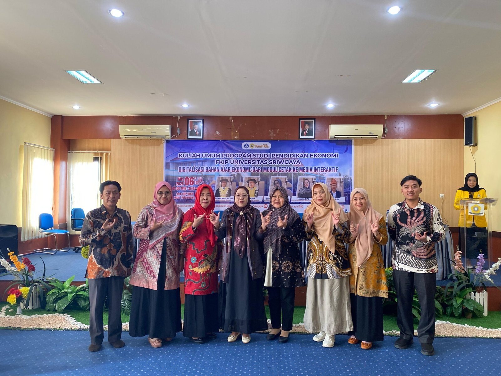 Tak hanya itu, dalam kegiatan ini hadir juga secara langsung di aula FKIP kampus ogan Palembang, dosen – dosen di program studi pendidikan ekonomi beserta beberapa mahasiswa yang terlibat kepanitiaan dalam menyukseskan kegiatan kuliah umum.