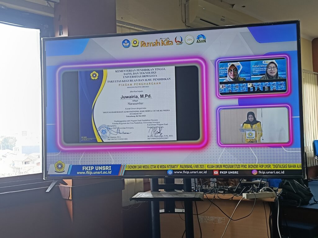 pendidikanekonomi.fkipunsri.org, Program Studi Pendidikan Ekonomi FKIP Universitas Sriwijaya kembali menghadirkan kegiatan kuliah umum dengan tema “Digitalisasi Bahan Ajar Ekonomi: Dari Modul Cetak ke Media Interaktif” yang dilaksanakan pada hari Selasa, 6 Mei 2025 bertempat di Aula FKIP lantai 3 Kampus Ogan Palembang. Kegiatan ini diikuti oleh seluruh mahasiswa aktif program studi pendidikan ekonomi secara daring melalui zoom meeting.