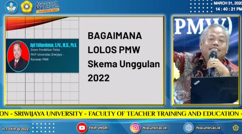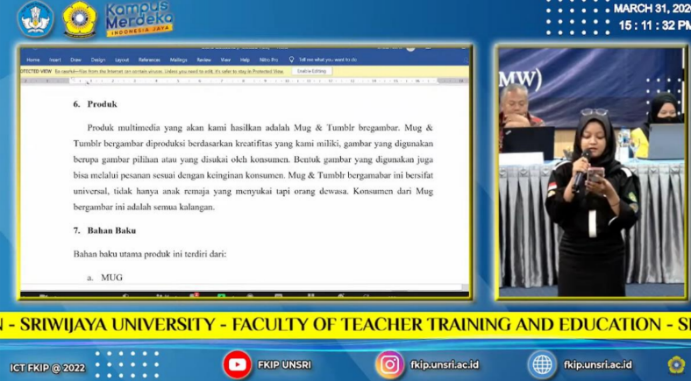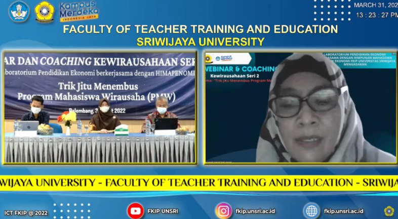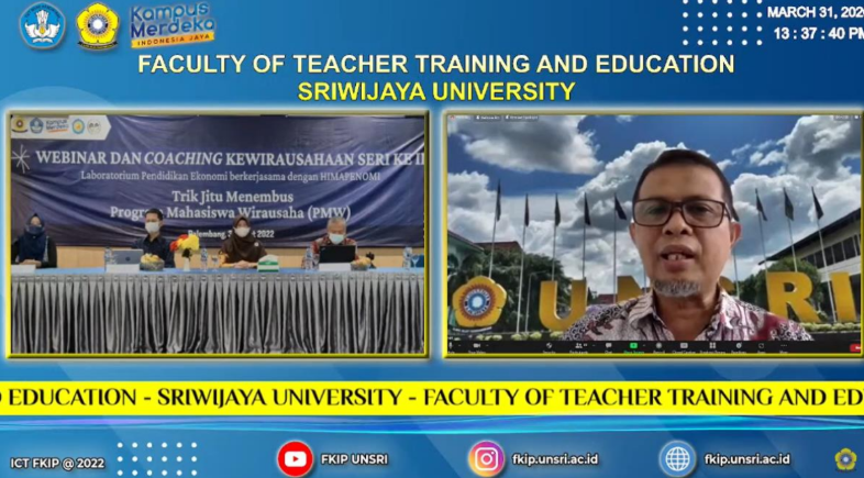 Palembang, 31 Maret 2022 – Program Studi Pendidikan Ekonomi FKIP Universitas Sriwijaya dengan bangga mengadakan Webinar dan Coaching Kewirausahaan Seri II bertema “Trik Jitu Menembus Program Mahasiswa Wirausaha (PMW)”. Kegiatan ini dilaksanakan secara hybrid, bertempat di Aula FKIP Ogan Palembang dan platform Zoom Meeting. Webinar ini diikuti oleh mahasiswa Program Studi Pendidikan Ekonomi serta para dosen, dengan antusiasme tinggi untuk memperluas wawasan terkait kewirausahaan.