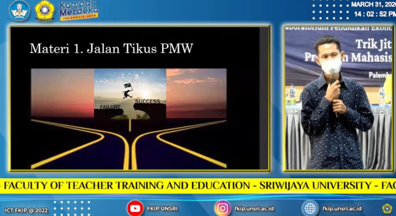 Palembang, 31 Maret 2022 – Program Studi Pendidikan Ekonomi FKIP Universitas Sriwijaya dengan bangga mengadakan Webinar dan Coaching Kewirausahaan Seri II bertema “Trik Jitu Menembus Program Mahasiswa Wirausaha (PMW)”. Kegiatan ini dilaksanakan secara hybrid, bertempat di Aula FKIP Ogan Palembang dan platform Zoom Meeting. Webinar ini diikuti oleh mahasiswa Program Studi Pendidikan Ekonomi serta para dosen, dengan antusiasme tinggi untuk memperluas wawasan terkait kewirausahaan.
